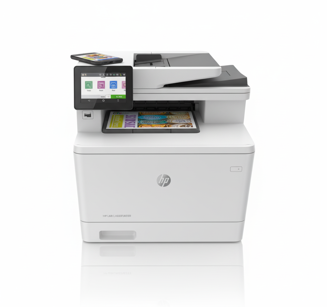 طابعة ليزر ملوّنة متعددة الوظائف تجمع بين الأداء العالي، الكفاءة، والدقة في تصميم عملي يناسب المكاتب الصغيرة والمتوسطة.